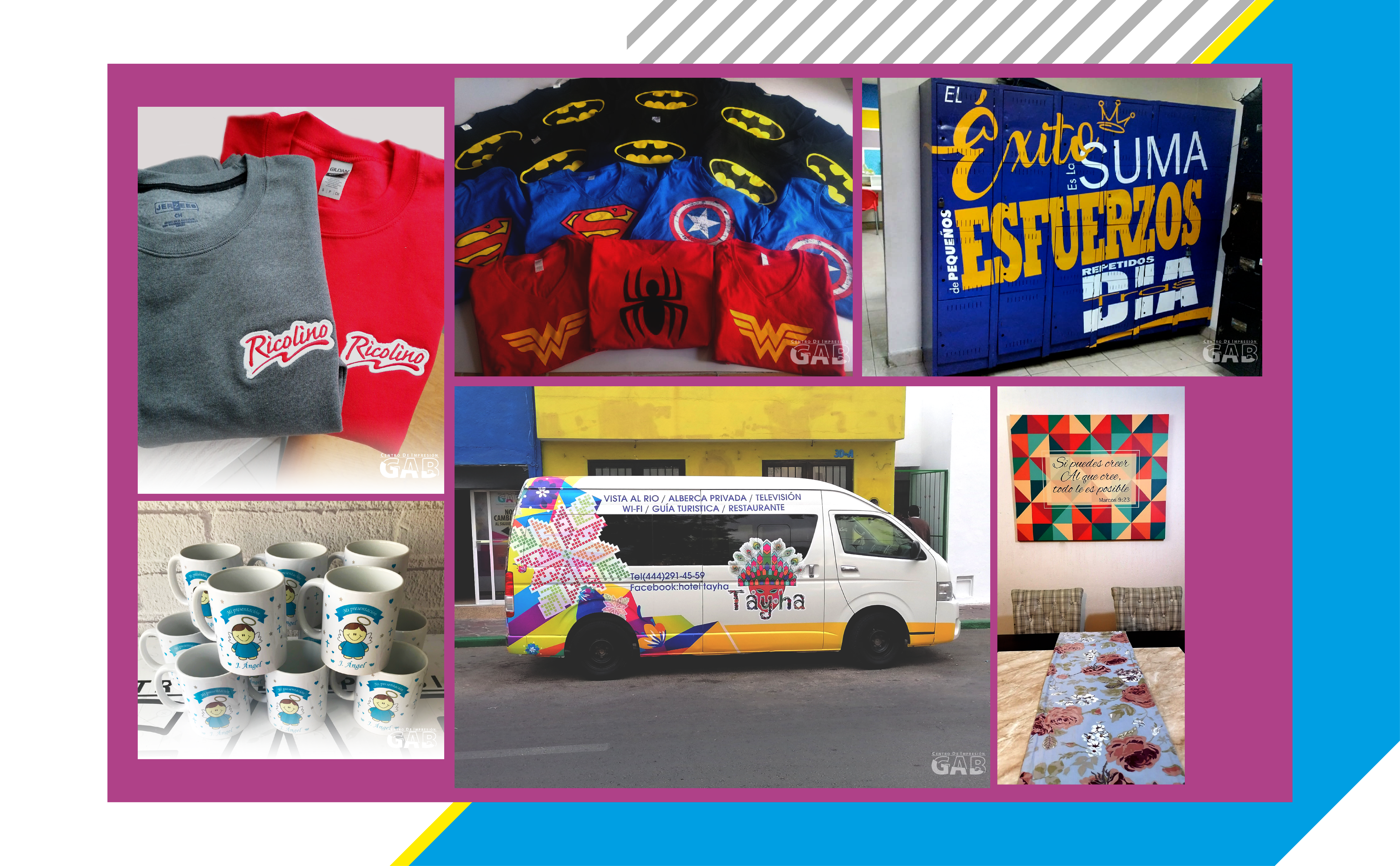 Tazas, Playeras, Sudaderas, Termos, Cilindros, Agendas, Tarros y más.